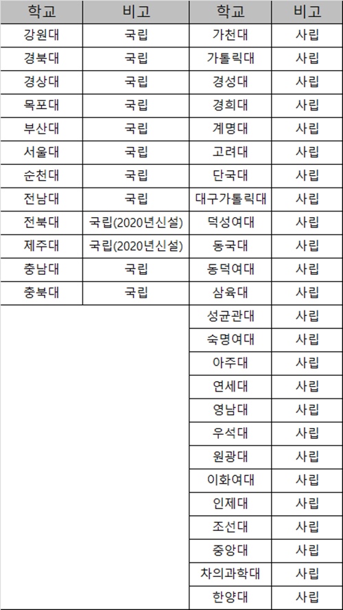 서울대와 강원대, 충남대, 충북대, 경상대, 부산대, 전남대, 목포대, 순천대, 경북대 등 국립대 12곳의 전환 여부는 확실히 알려지지 않았다. 차후 교육부와 추가 협의를 통해 현행 2+4년제로 남을지, 통합 6년제로 개편할지 정할 것으로 보인다.