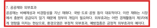 출제 맥락: 시장이 스스로 해결할 수 없는 문제들이므로, 정부의 역할과 공동체의 책임이 왜 중요한지를 설명할 때 반드시 필요한 개념입니다.