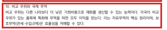 출제 맥락: 자유 무역을 옹호하는 핵심 논리로, 보호 무역의 비효율성을 비판할 때 사용됩니다.