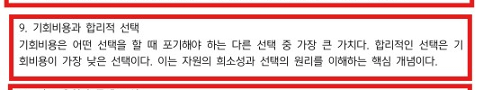 출제 맥락: 모든 '합리적 선택'을 분석하는 가장 기본적인 도구입니다. 개인의 선택부터 국가의 정책 결정까지 모든 선택에는 기회비용이 따름을 지적할 때 사용됩니다.