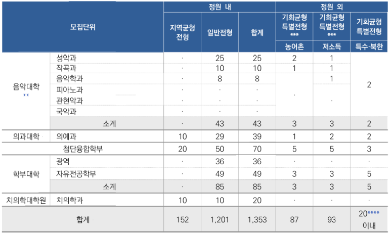 * 참고로 추후 변경되는 내용이나 생략된 내용이 있을 수 있으니 자세한 내용은 반드시 각 학교 입학처 홈페이지를 통해 확인해 주시길 바랍니다.