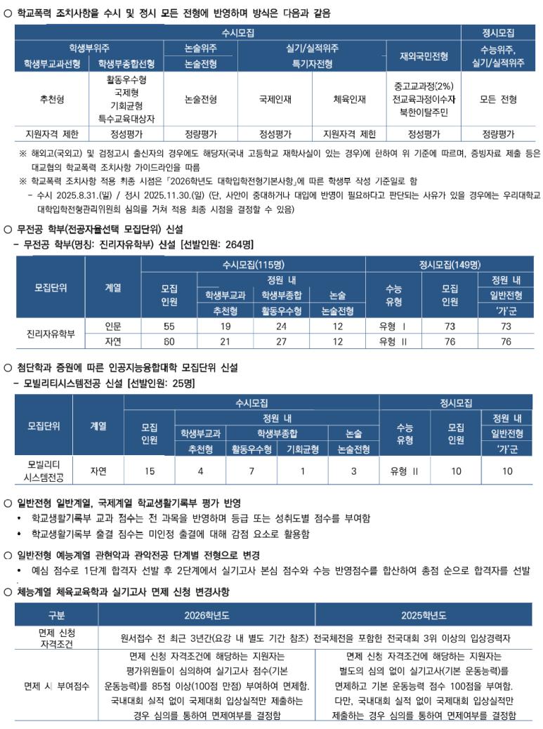 ■ 수시모집 합격자 발표: 2025년 12월 12일 (금) 까지