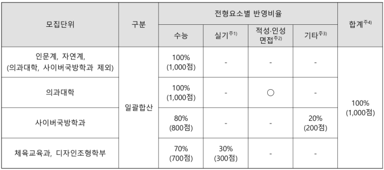 ※의과대학은 적성인성 면접이 있으며 별도 배점은 없음