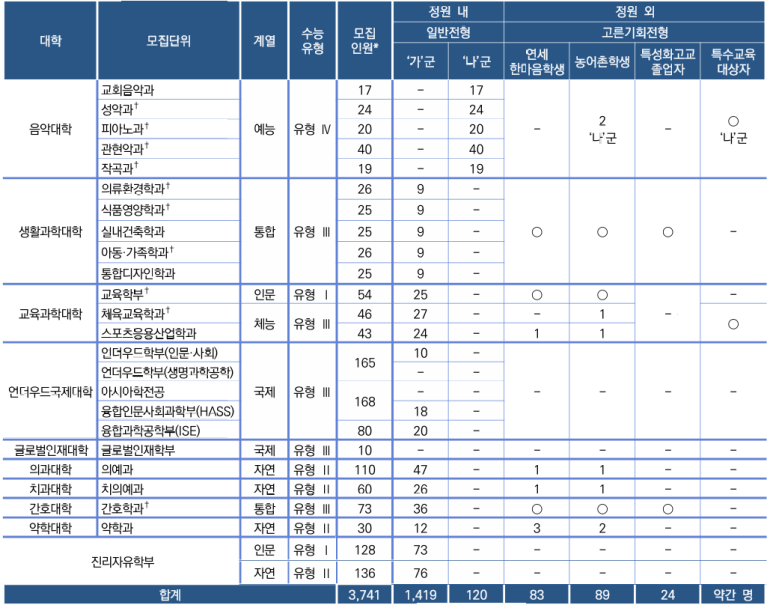 다음으로 연세대 정시 전형을 살펴볼게요:)