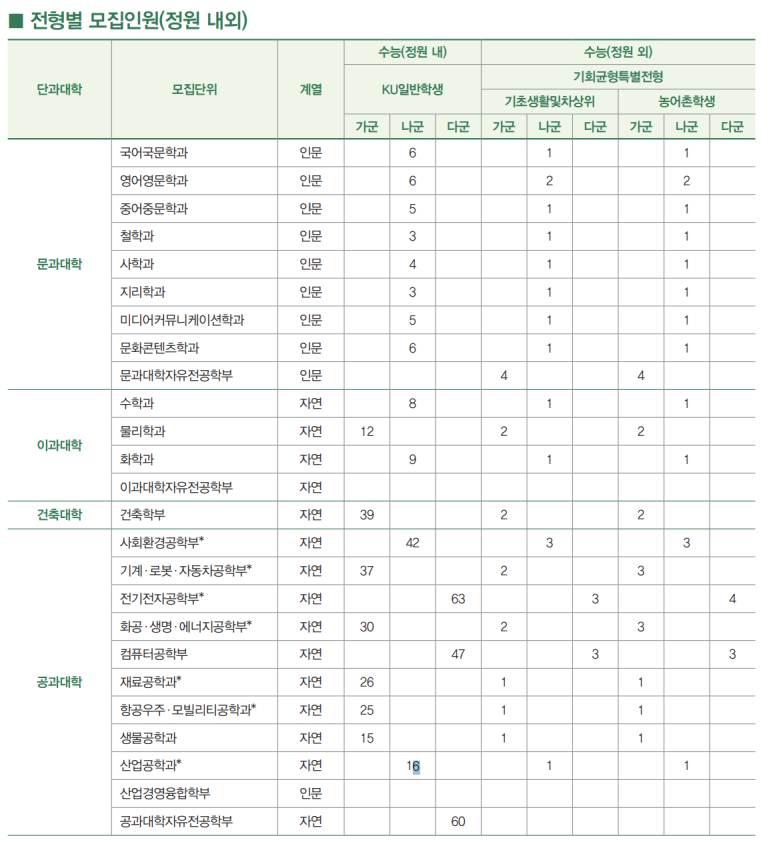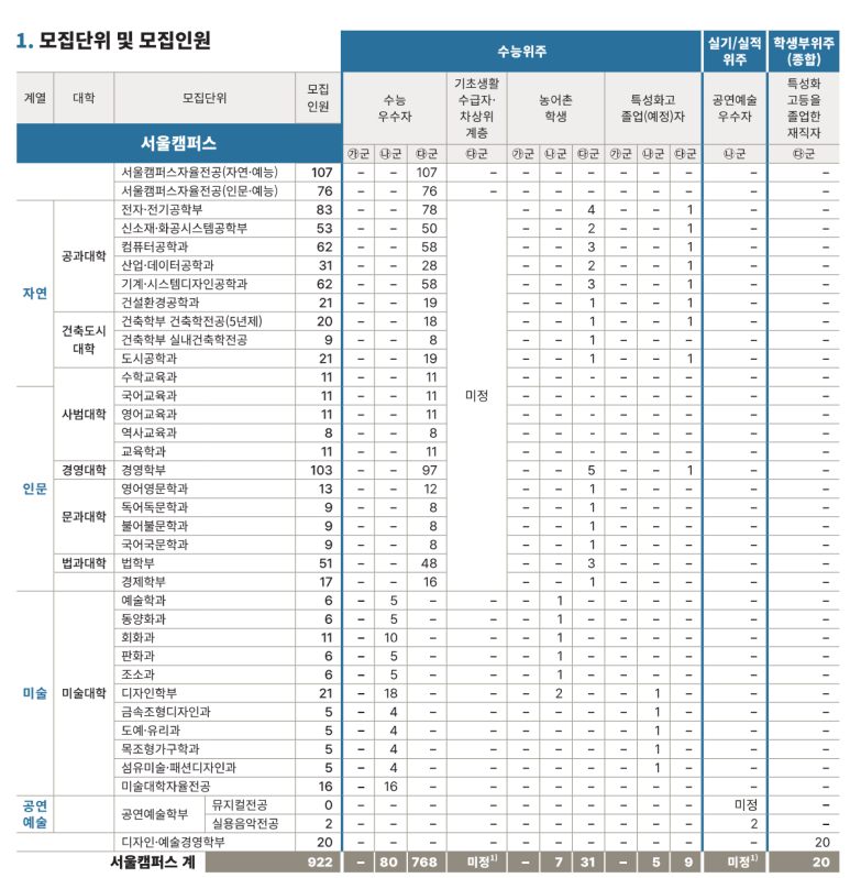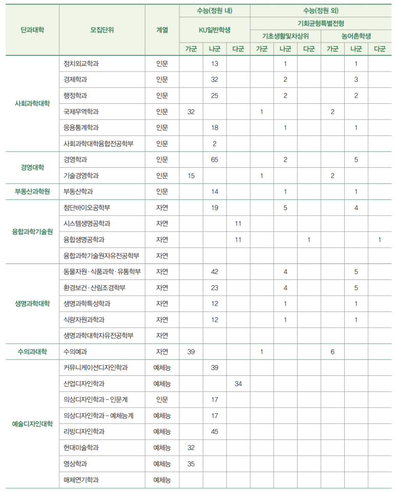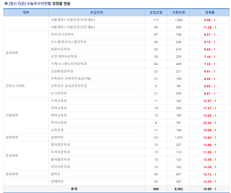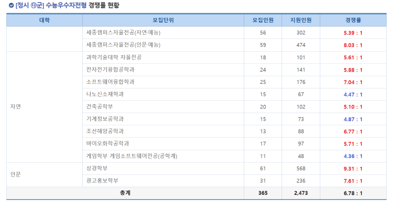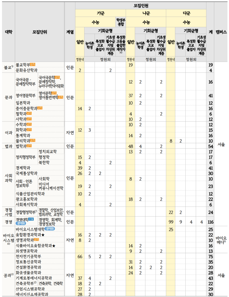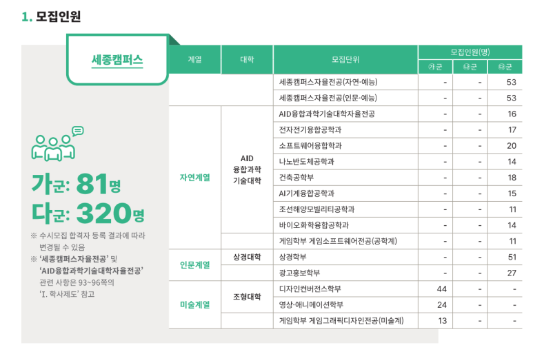▶모집인원: (서울캠)나군 80명, 다군 768명 / (세종캠) 가군 81명, 다군 320명