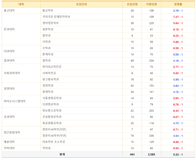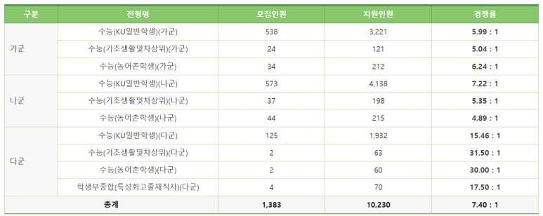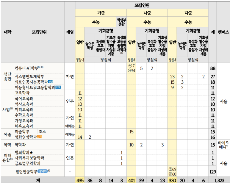 ▶모집인원: 가군 416명, 나군 566명, 다군 226명