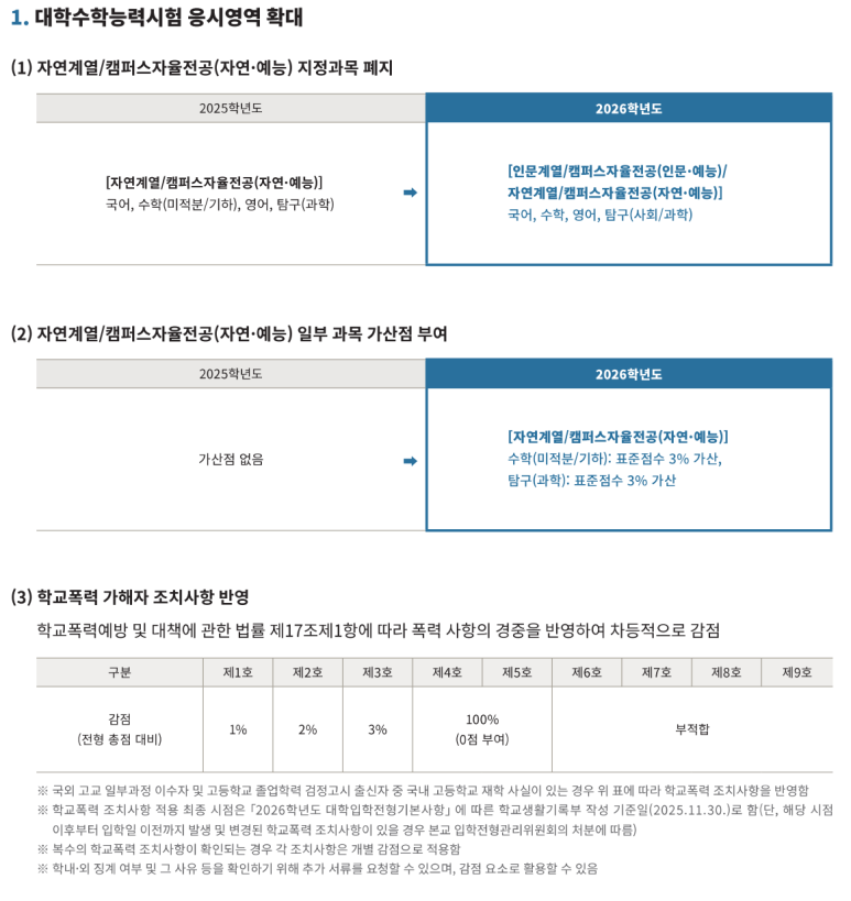 오늘은 2026 주요 대학 정시 전형에 대해 안내드리고자 합니다.