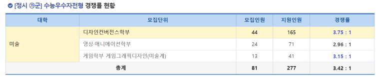 ▶수능 반영 방법: 수능 100% (미술 계열 제외, 서울캠 기준)
