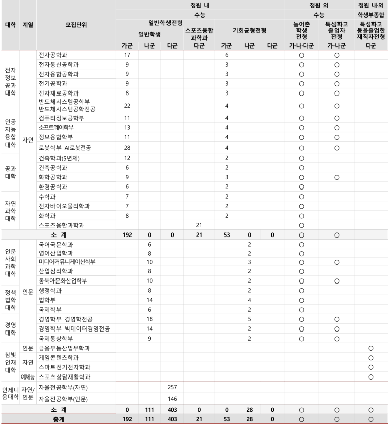▶모집인원: 가군 192명, 나군 111명, 다군 403명
