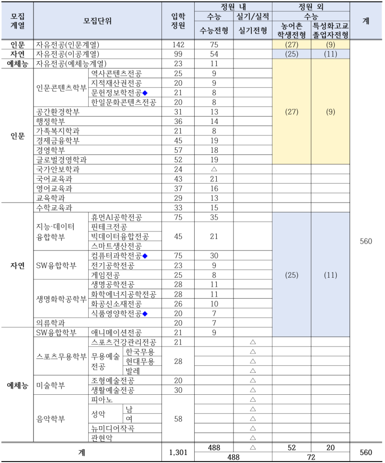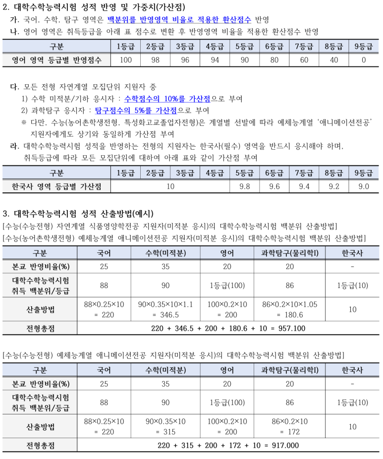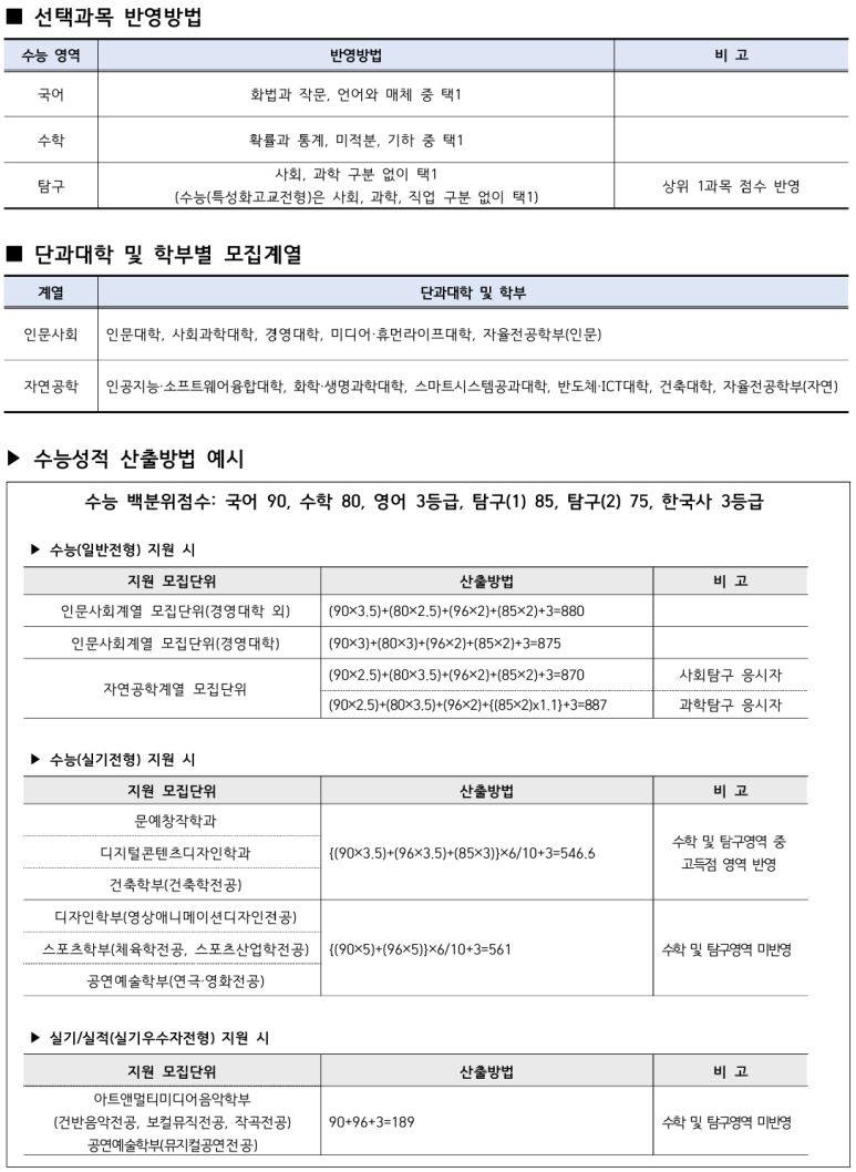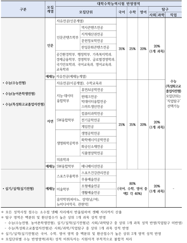 * 참고로 추후 변경되는 내용이나 생략된 내용이 있을 수 있으니 자세한 내용은 반드시 각 학교 입학처 홈페이지를 통해 확인해 주시길 바랍니다.