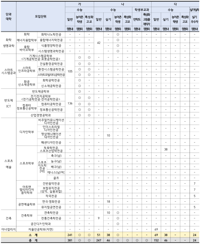 ▶모집인원: 가군 381명, 나군 247명, 다군 152명