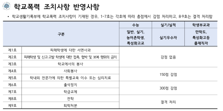 전년도 대비 변경 사항의 경우, 학교폭력 가해학생 조치사항을 주요하게 살펴보시기 바랍니다!