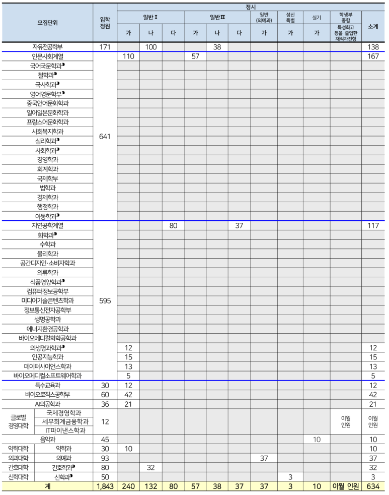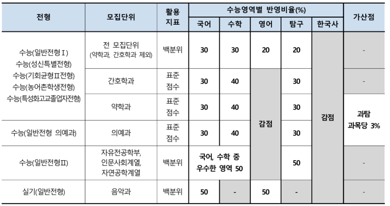 (의예과 - 수능 95% + 인적성 면접 5%)
