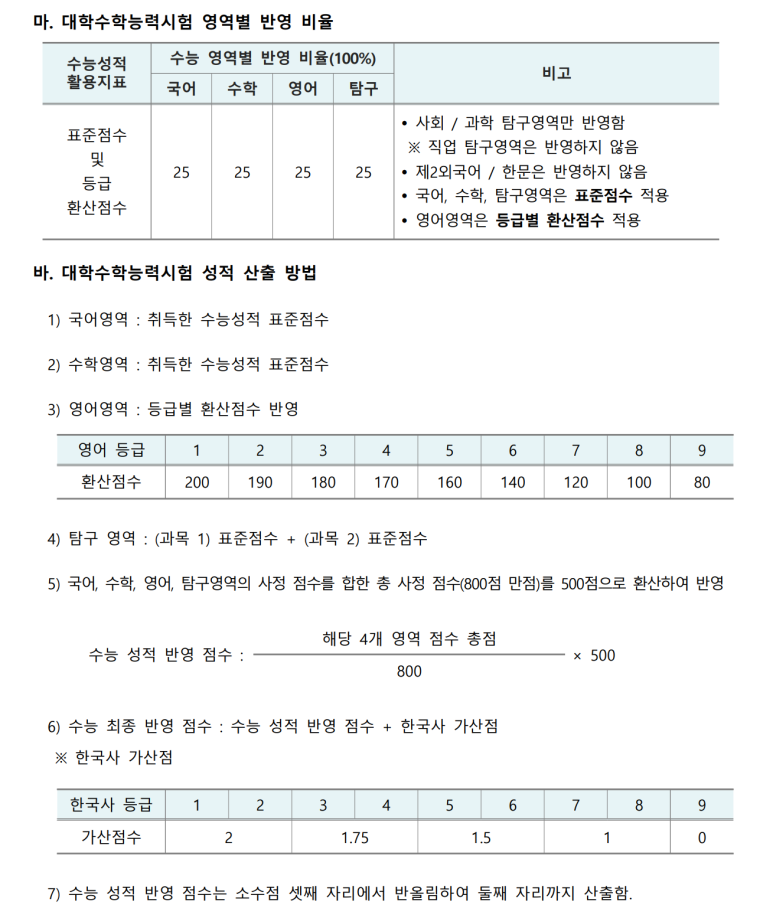 * 참고로 추후 변경되는 내용이나 생략된 내용이 있을 수 있으니 자세한 내용은 반드시 각 학교 입학처 홈페이지를 통해 확인해 주시길 바랍니다.