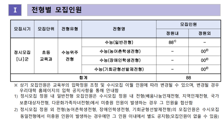다른 교대와는 다르게 수능 최저 학력 기준이 없는 것을 확인하실 수 있습니다.