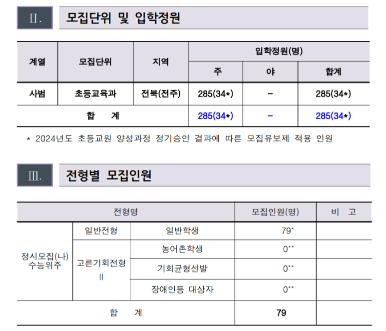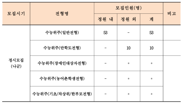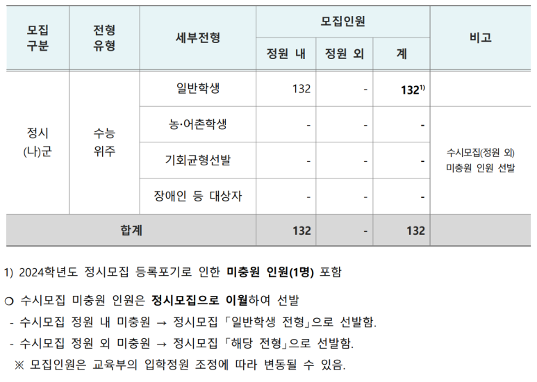 2025학년도에는 일반학생 전형에서 110명을 모집했다면, 이번 정시 전형에서는 79명을 모집합니다.