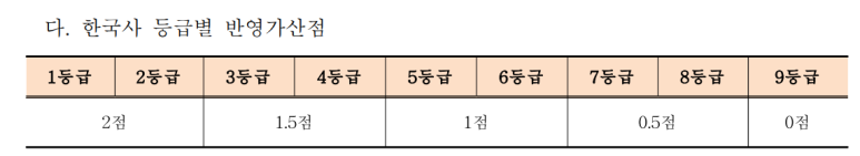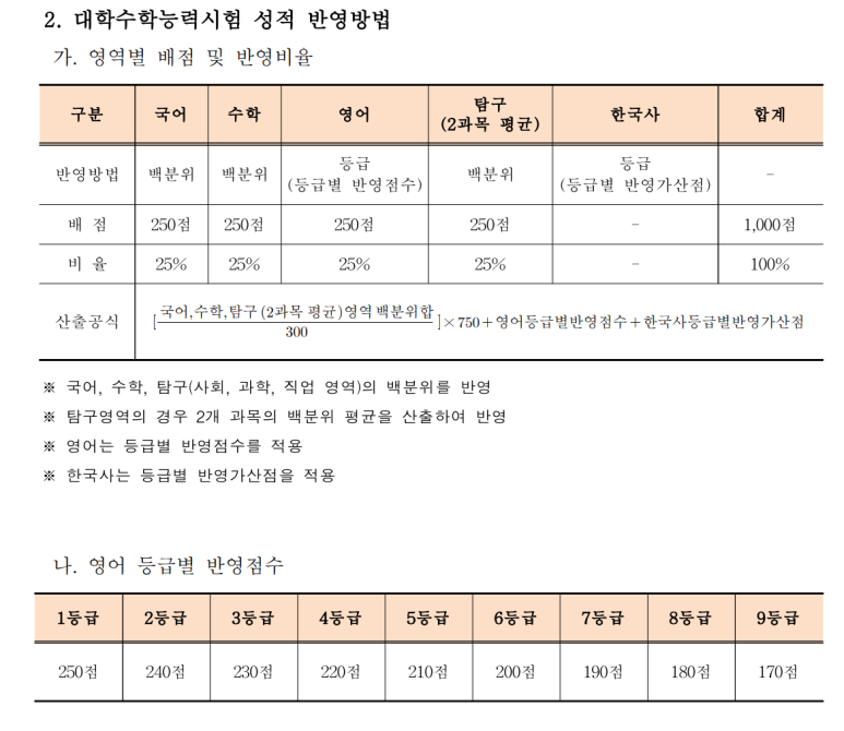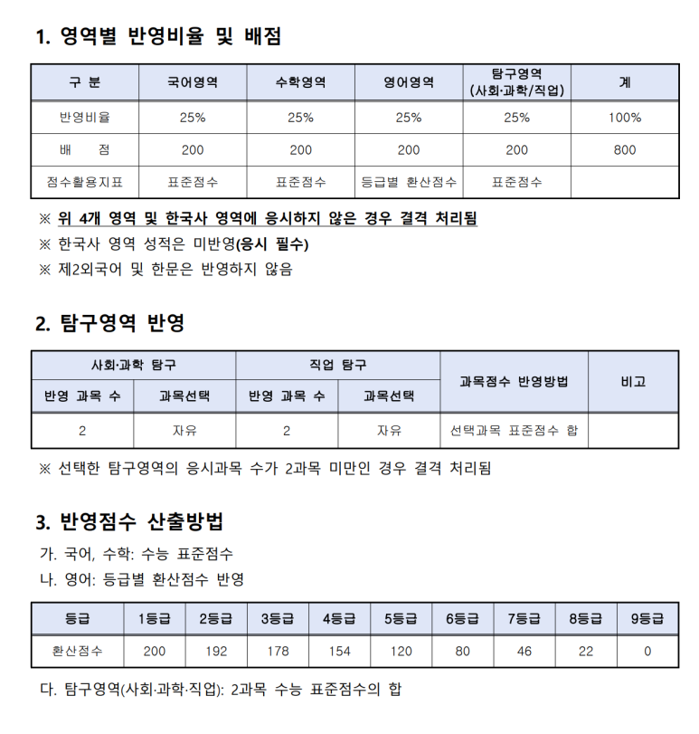 * 국어, 수학, 영어, 탐구(2과목), 한국사
