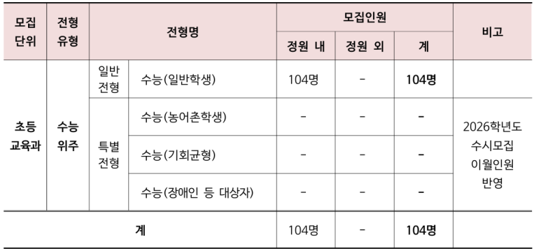 2026학년도 정시 전형 - 대구교대, 부산교대, 진주교대