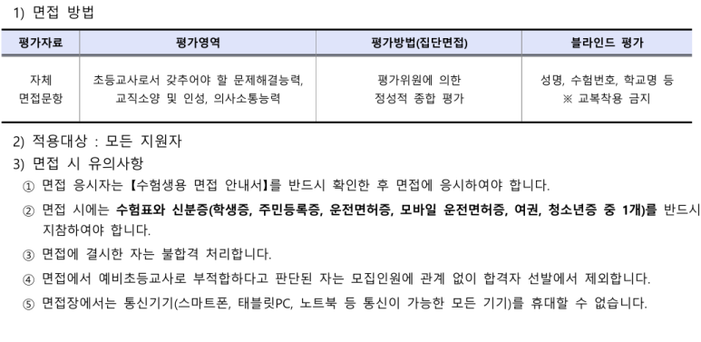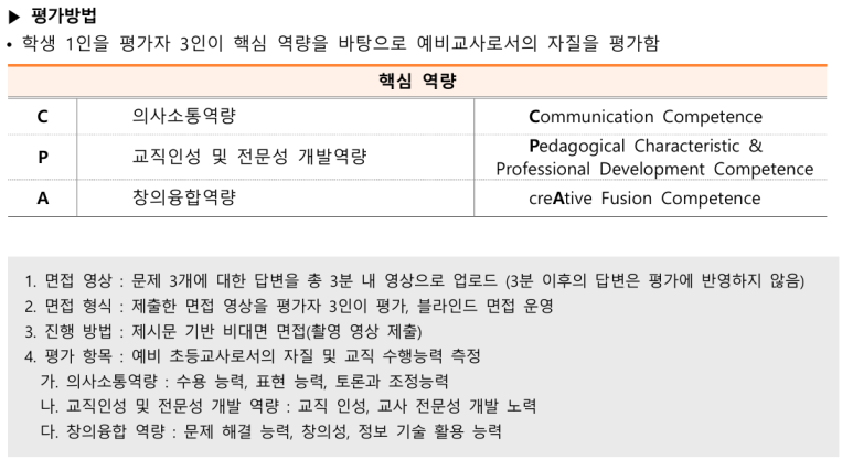 조언: 대구교대의 2025 정시 면접은 2-3 면접이었으며, 면접관 두 분 모두 친절하셨다고 합니다. 또한 답변 적는 시간을 4분 주며, 이 시간이 꽤 여유로웠다고 합니다. 답변은 순번대로, 추가질문은 역순번으로 발표하였으며, 지난해와는 문제나 분위기가 많이 달랐다고 합니다.