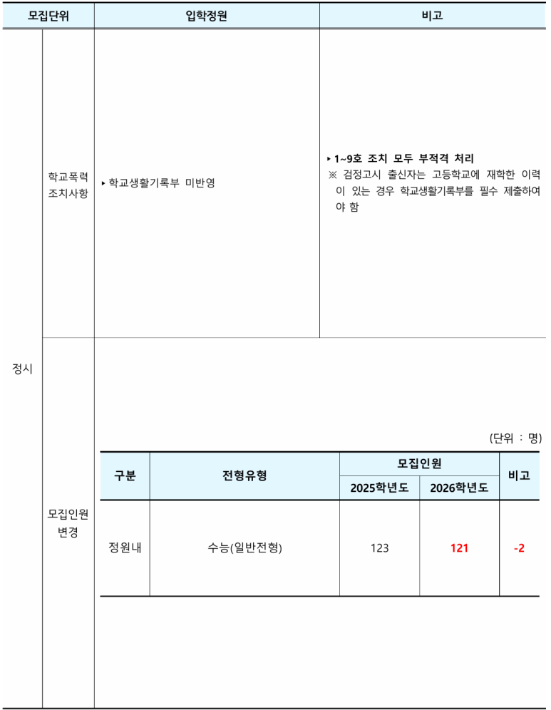 ■ 정시모집 합격자 발표: 2026년 2월 2일 (월) 까지