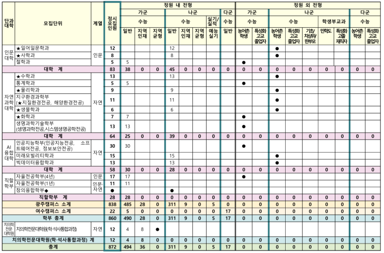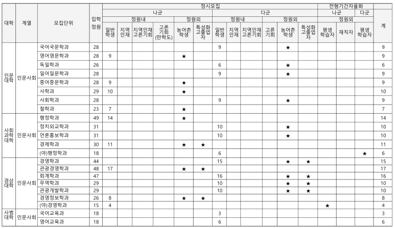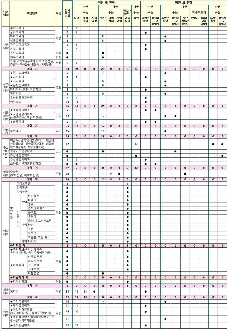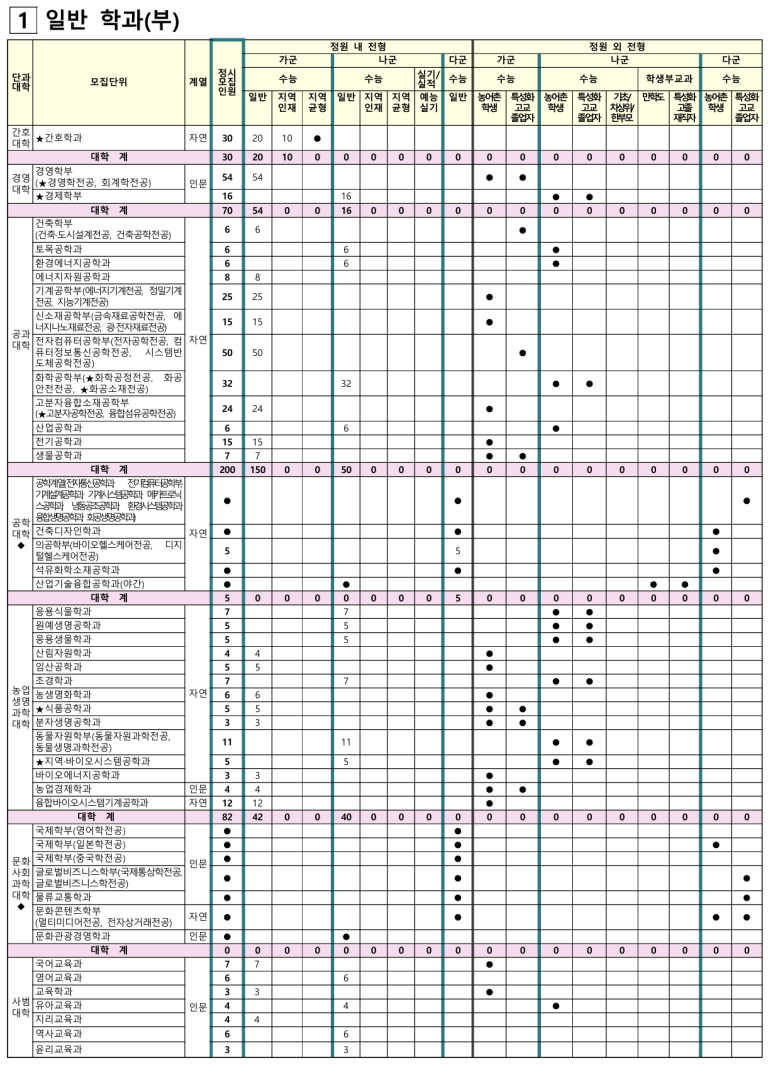 ▶모집인원: 가군 494명, 나군 311명, 다군 17명