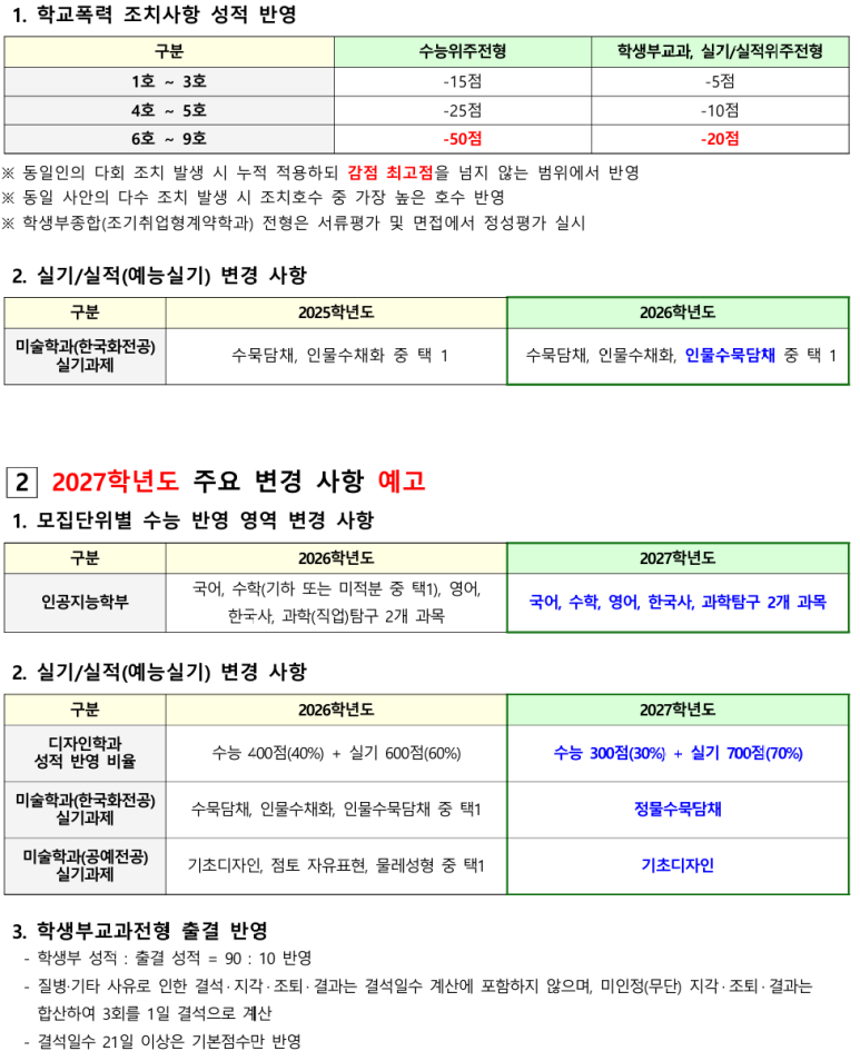 * 참고로 추후 변경되는 내용이나 생략된 내용이 있을 수 있으니 자세한 내용은 반드시 각 학교 입학처 홈페이지를 통해 확인해 주시길 바랍니다.