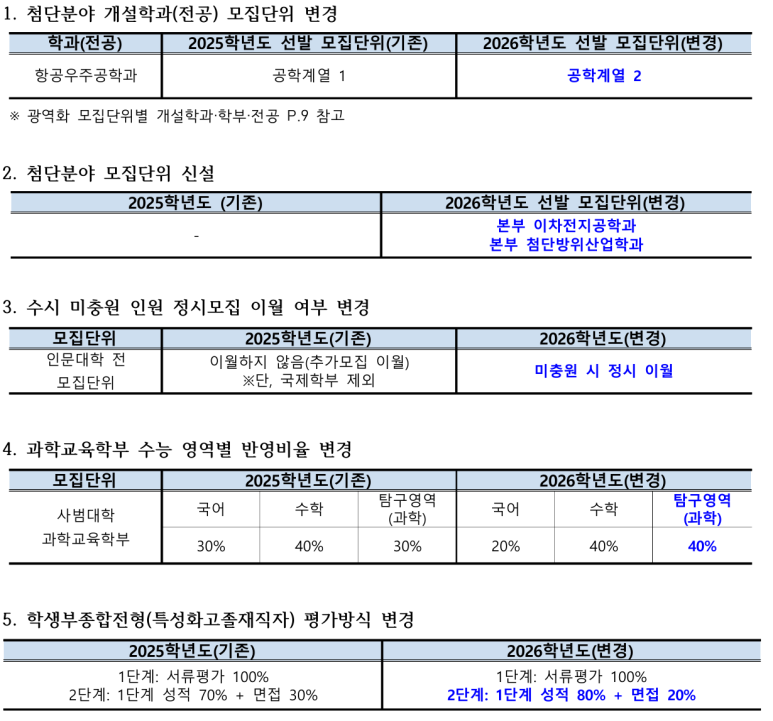 오늘은 주요 대학교들의 2026학년도 정시 전형을 살펴보려고 합니다.
