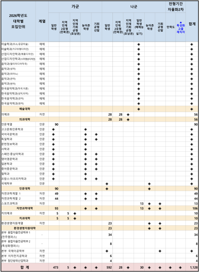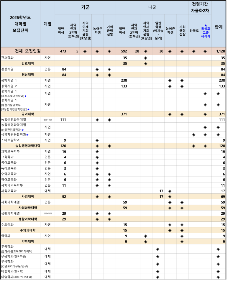 2026학년도 정시 전형 - 전북대, 전남대, 제주대