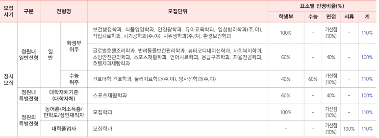 ▶전형 방법: 수능 90%+학생부(출결) 10%