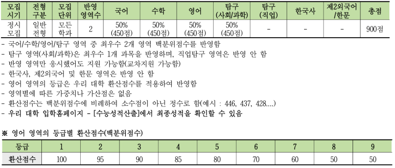 * 참고로 추후 변경되는 내용이나 생략된 내용이 있을 수 있으니 자세한 내용은 반드시 각 학교 입학처 홈페이지를 통해 확인해 주시길 바랍니다.