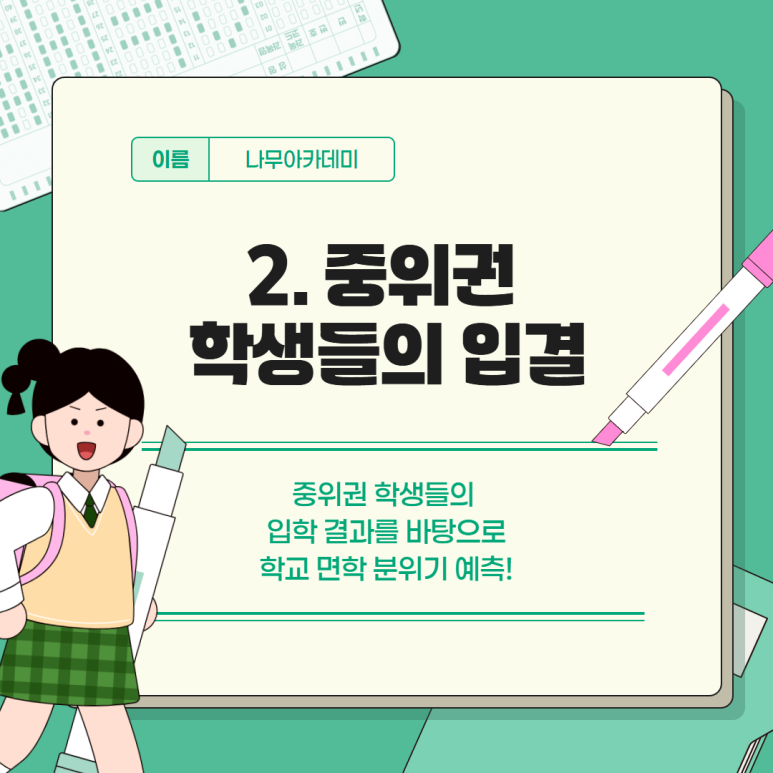 만약 중위권 학생들의 입학 결과가 좋지 않다면, 학교의 학습 분위기를 의심해볼 수 있습니다.