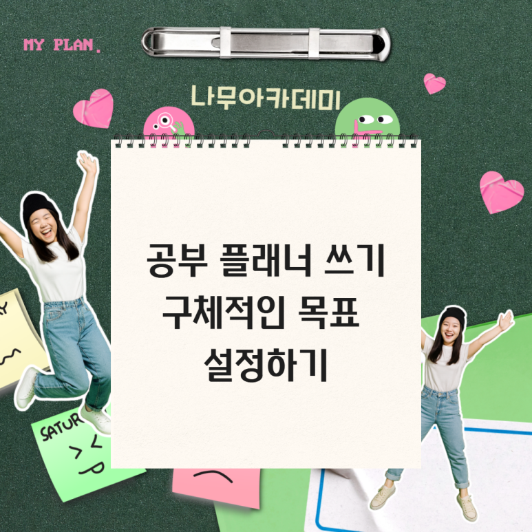 자신의 공부 방향성을 정해두고 주체적으로 학습한다면 고등학교에 들어가기 전 큰 도움이 될 것이라 생각합니다. 이러한 목표를 플래너에 적으면 더욱 의지가 생기겠죠?