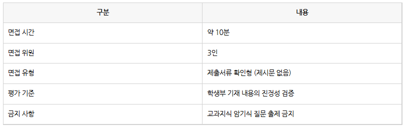 2026학년도 수시 학종 면접 예정일: 2025년 11월 20일(목)