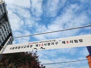 학교를 나서면 어디로 갔느냐? 저는 바로 제가 시험을 보는 학교로 향했습니다. 제가 시험을 보는 학교는 모교 주변에 있었기 때문에 저와 같은 곳에서 시험을 보는 친구들을 데리고 고시를 치는 학교로 갔습니다. 학교에 가니 수능시험장 배너와 고시장 배치표가 걸려있더군요. 저는 그때 수능을 치는 학교 운동장까지 들어가볼 수가 있어서 학교에 들어가서 수험생 시험실 안내를 보면서 내가 시험을 치는 고시장은 저쪽 쯤이겠구나~ 하고 확인을 했습니다. 또 운동장을 한바퀴 돌아보기도 했구요~