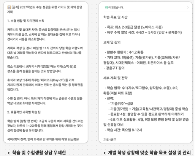 이거까지 제공중이고 진짜 입시 전반을 전부 관리해주는 방향으로 준비중
