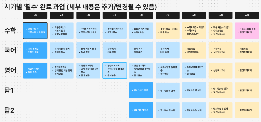 아예 학생 개별적으로 대략적인 연간일정표 제공하고