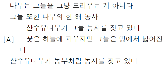 '산수유나무의 농사' 중 일부를 지정하고, 아래와 같이