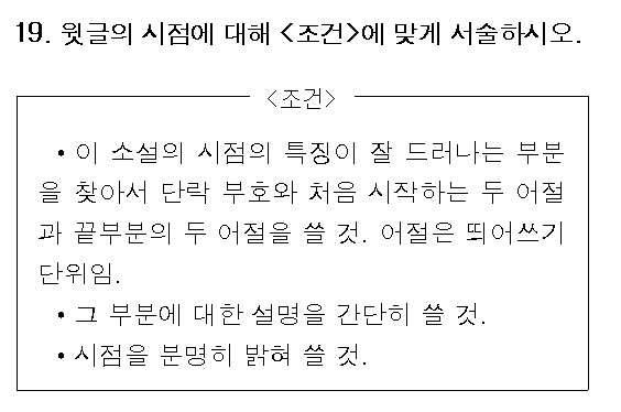 아래 문제와 같이 복잡한 <조건>들을 충족하는 답안을 쓰는 연습을 해 보세요!