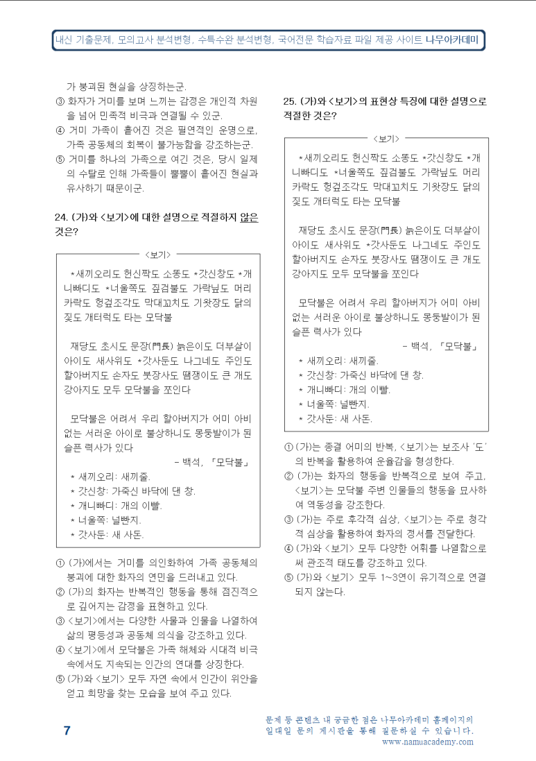 출판사마다 서로 다른 <보기> 내용과 연계 작품 등을 활용하기 때문에 하나의 작품에 대한 여러 출판사의 문제들을 풀어보면 시험에서 모르는 지문이 연계되어도 금방 적용하여 풀 수 있을 것입니다!