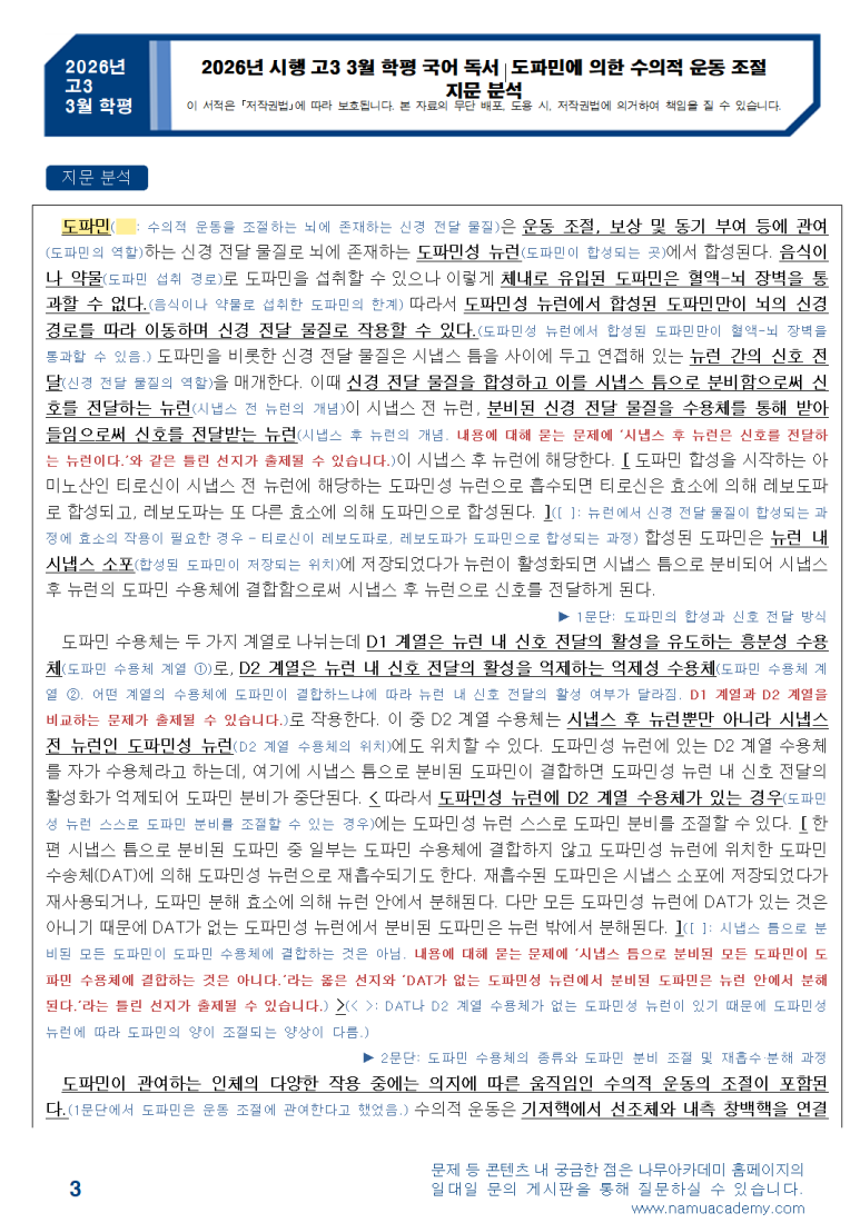 2026년 시행 고3 3월 학평 국어 독서 도파민에 의한 수의적 운동 조절 분석.hwp