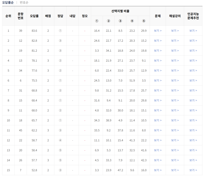 이렇게 오답률 1위 문제를 같이 살펴봤는데요.