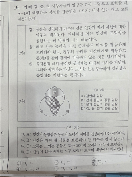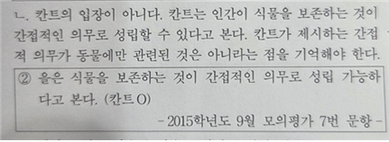 ㄴ. 칸트의 입장이 아니다. 칸트는 인간이 식물을 보존하는 것이 간접적인 의무로 성립할 수 있다고 본다. 칸트가 제시하는 간접적 의무가 동물에만 관련된 것은 아니라는 점을 기억해야 한다.
