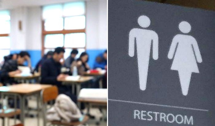 진짜 국어답안지와 스마트폰을 들고 화장실로간다.